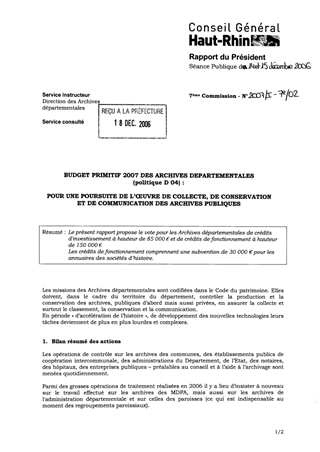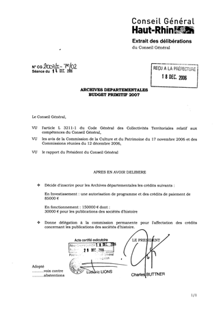 Le présent rapport propose le vote pour les Archives départementales de crédits d'investissement à hauteur de 85 000 € et de crédits de fonctionnement à hauteur de 150 000 €. Les crédits de fonctionnement comprennent une subvention de 30 000 € pour les annuaires des sociétés d’histoire.