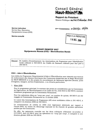 En matière d'investissement, les Autorisations de Programme pour l'électrification rurale s'élèvent à 400 000 €, les Crédits de Paiement s’élèvent pour leur part à 360 000 €.
