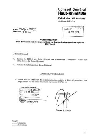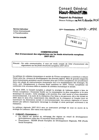 Par cette communication, il vous est rendu compte de l'état d'avancement des négociations sur les fonds structurels européens 2007-2013.