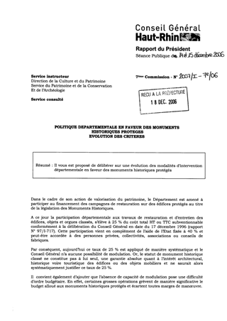Politique départementale en faveur des Monuments historiques protégés : évolution des critères