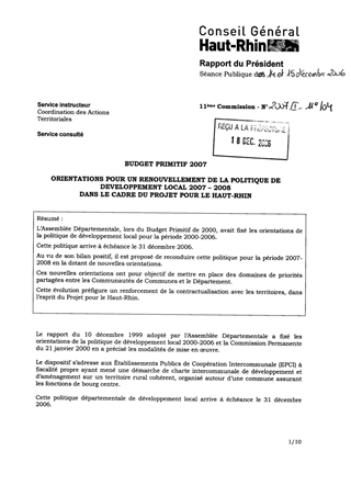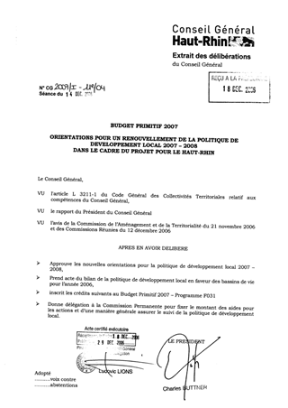 Orientations pour un renouvellement de la politique de développement local 2007-2008 dans le cadre du projet pour le Haut-Rhin
