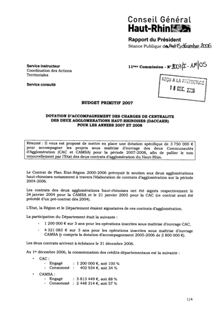 Dotation d'accompagnement des charges de centralité des deux agglomérations haut-rhinoise (DACCAHR) pour les années 2007 et 2008