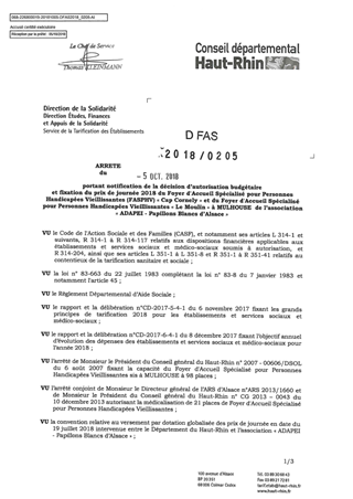 portant notification de la décision d'autorisation budgétaire fixation du prix de journée 2018 du foyer d'accueil spécialisé pour personnes handicapées vieillissantes (FASPHV) "Cap Cornely" et du foyer d'accueil spécialisé pour personnes vieillissantes