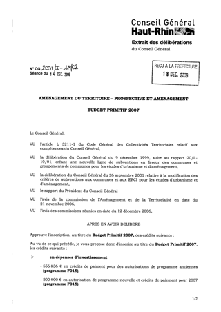 Dans le cadre des politiques F01 « Aménagement du territoire » et F03 « Vie locale », le budget consacré à l'Aménagement et au Développement des Territoires en 2007 se décline comme suit :