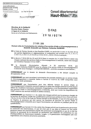 portant refus de l'autorisation de création d'un service d'aide et d'accompagnement à domicile demandée par Madame Catherine RAIMOND Resumé Pièces jointes ARRETE Assemblée : Non défini Date : 20/11/2018 Rapporteur : Non défini Collectivité : Conseil départemental du Haut-Rhin Direction : Non défini Service : Direction Ressources Solidarité Domaine : Autres (non classés) Commission :