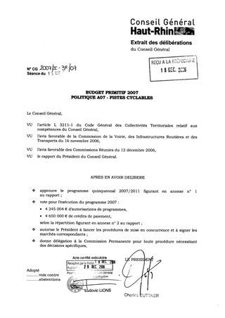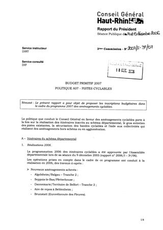 Le présent rapport a pour objet de proposer les inscriptions budgétaires dans le cadre du programme 2007 des aménagements cyclables.
