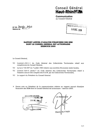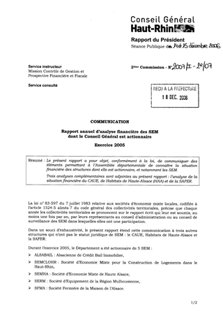 COMMUNICATION : rapport annuel d'analyse financière des SEM dont le Conseil Général est actionnaire - exercice 2005