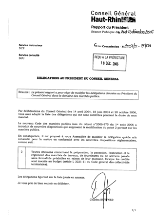 Le présent rapport a pour objet de modifier les délégations données au Président du Conseil Général dans le domaine des marchés publics.