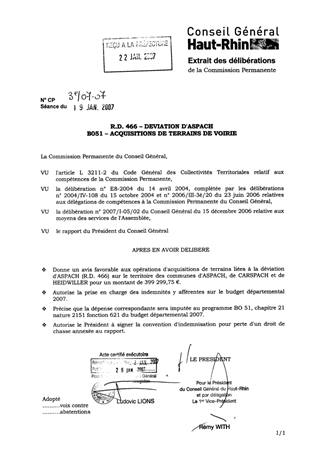 RD 466. Déviation d'ASPACH. B051 Acquisitions de terrains de voirie