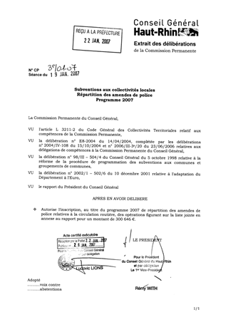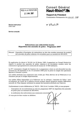 Subventions aux collectivités locales. Répartition des amendes de police. Programme 2007