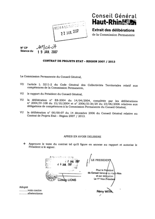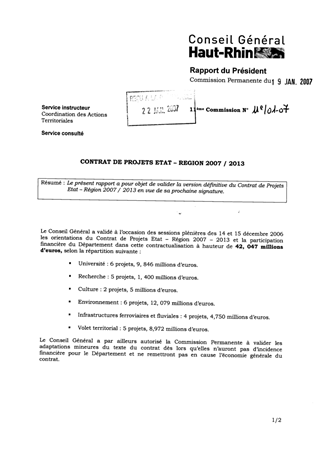 Le présent rapport a pour objet de valider la version définitive du Contrat de Projets Etat – Région 2007 / 2013 en vue de sa prochaine signature.