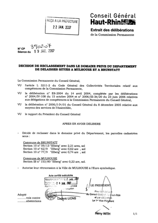 Décision de reclassement dans le domaine privé du Département de délaissés situés à Mulhouse et à Brunstatt