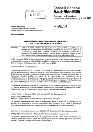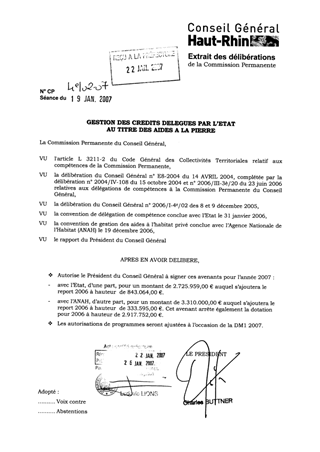 Aide à la pierre. Suite à la signature le 31 janvier 2006 avec l’Etat de la convention de délégation de compétence relative aux aides à la pierre et le 19 décembre 2006 avec l’Agence Nationale de l’Habitat (ANAH) de la convention de gestion des aides à l’Habitat privé, le présent rapport a pour objet d’approuver les avenants annuels prévus dans les conventions.