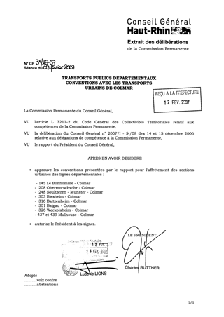 Transports publics départementaux. Conventions avec les transports urbains de COLMAR