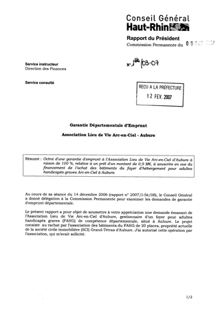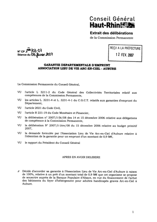 Garantie Départementale d’Emprunt. Association Lieu de Vie Arc-en-Ciel Aubure