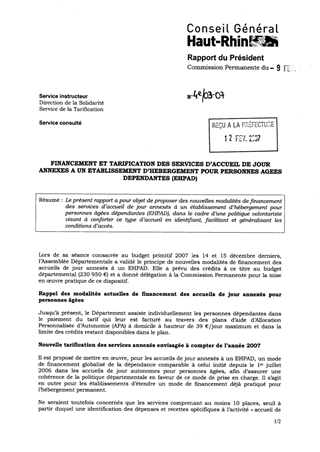 Le présent rapport a pour objet de proposer des nouvelles modalités de financement des services d’accueil de jour annexés à un établissement d’hébergement pour personnes âgées dépendantes (EHPAD), dans le cadre d’une politique volontariste visant à conforter ce type d’accueil en identifiant, facilitant et généralisant les conditions d’accès.