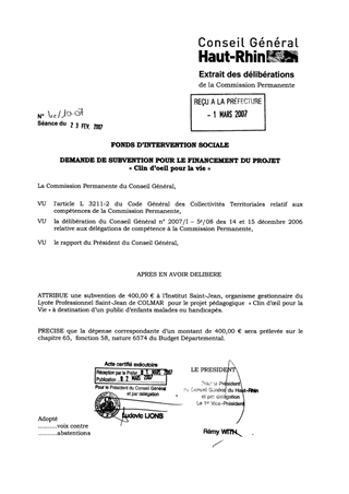 Fonds d'intervention sociale : demande de subvention pour le financement du projet "Clin d'œil pour la vie".