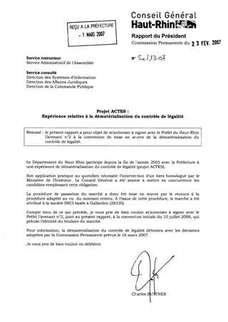 Projet ACTES : expérience relative à la dématérialisation du contrôle de légalité.