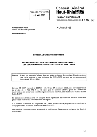 Soutien à l'animation sportive. Les actions en faveur des Comités Départemetnaux, des clubs sportifs et des titulaires du BAFA - BAFD.