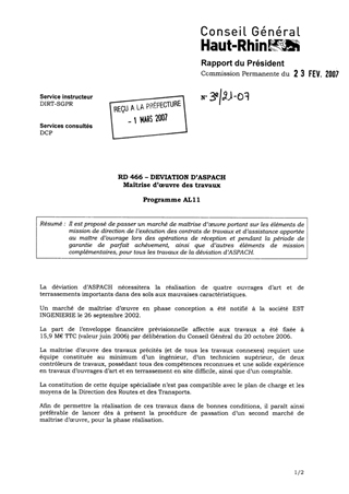 RD 466. Déviation d'ASPACH. Maîtrise d'œuvre des travaux. Programme AL11.