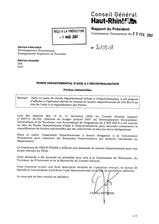 Dans le cadre du Fonds Départemental d’Aide à l’Industrialisation, il est proposé d’affecter à l’opération décrite en annexe un soutien départemental de 259 802 € au titre de l’aide à la requalification des friches.