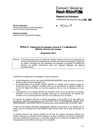RD 8bis II : suppression du passage à niveau n° 3 à BRUNSTATT. Maîtrise d'œuvre des travaux.