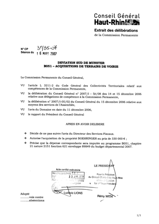 Déviation Sud de Munster. B051 Acquisitions de terrains de voirie