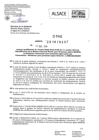 portant modification de l'arrêté DFAS 2019/0198 du 11-10-2019 de requalification de la Maison d'Accueil Rurale pour Personnes Agées (MARPA) en résidence autonomie pour personnes âgées gérée par l'association "Résidence pour personnes âgées Sérénité" à BRE