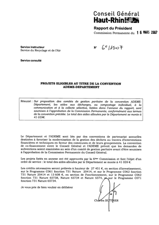 Sur proposition des comités de gestion paritaire de la convention ADEME-Département, les aides aux décharges, au compostage individuel, à la communication et à la collecte sélective, listées dans l’annexe du rapport, sont soumises à l’approbation de la Commission Permanente, conformément aux termes de la convention précitée. Le total des aides allouées par le Département se monte à 41 059€.