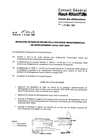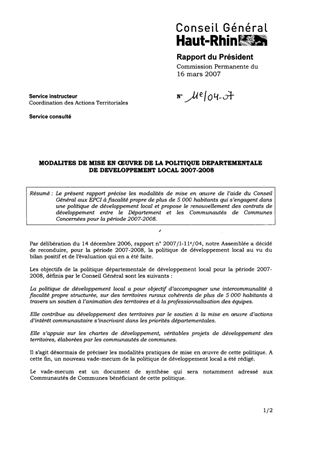 Modalités de mise en œuvre de la politique départementale de développement local 2007-2008