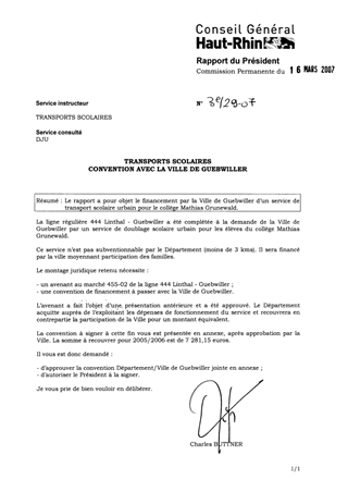 Le rapport a pour objet le financement par la Ville de Guebwiller d’un service de transport scolaire urbain pour le collège Mathias Grunewald.