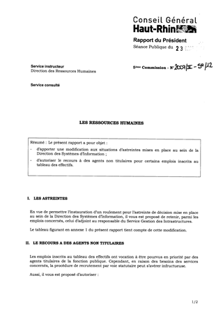 Le présent rapport a pour objet : - d’apporter une modification aux situations d’astreintes mises en place au sein de la Direction des Systèmes d’Information ; - d’autoriser le recours à des agents non titulaires pour certains emplois inscrits au tableau des effectifs.