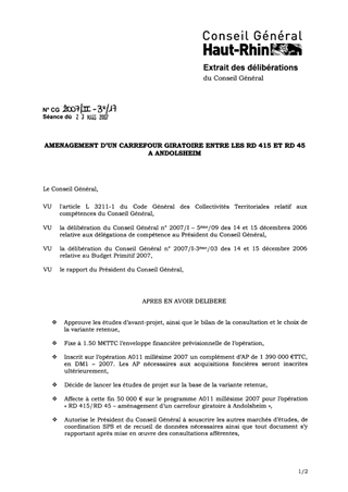 RD 415 / RD 45 Aménagement d'un carrefour giratoire à ANDOLSHEIM