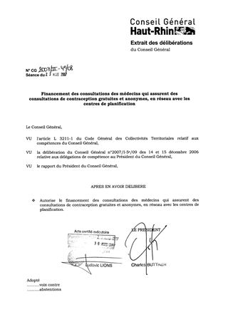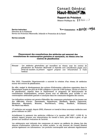Financement des consultations des médecins qui assurent des consultations de contraception gratuites et anonymes, en réseau avec les centres de planification