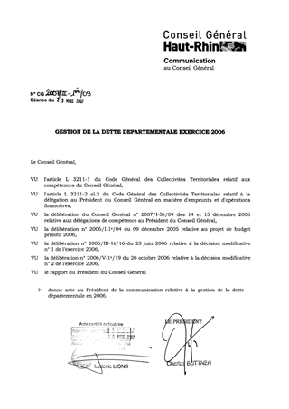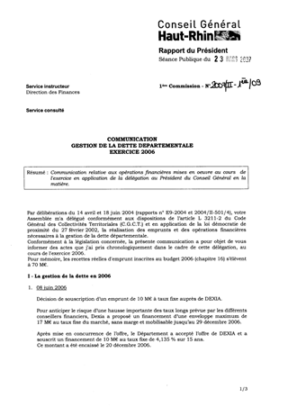 COMMUNICATION. Gestion de la dette départementale. Exercice 2006