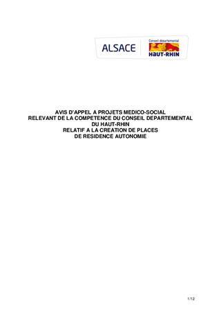 relevant de la compétence du Conseil départemental relatif à la création de places de résidence autonomie Resumé Pièces jointes ARRETE Assemblée : Non défini Date : 24/07/2020 Rapporteur : Non défini Collectivité : Conseil départemental du Haut-Rhin Direction : Non défini Service : DGA Développement Humain et Solidarité Domaine : Autres (non classés) Commission :