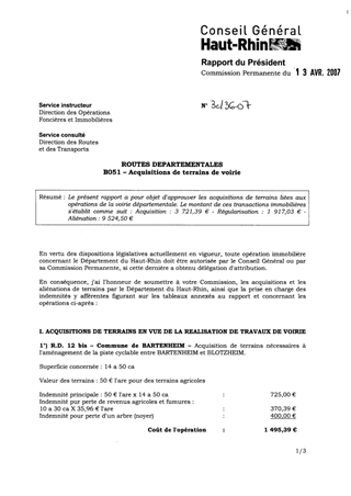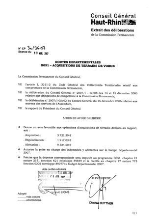 Le présent rapport a pour objet d'approuver les acquisitions de terrains liées aux opérations de la voirie départementale. Le montant de ces transactions immobilières s'établit comme suit : Acquisition : 3 721,39 € - Régularisation : 1 917,03 € - Aliénation : 9 524,50 €
