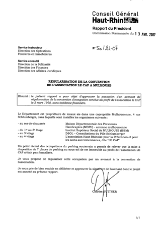 le présent rapport a pour objet d'approuver la passation d'un avenant de régularisation de la convention d'occupation conclue au profit de l'association le CAP le 2 mars 1998, sans incidence financière.