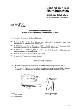 Déviation de RETZWILLER. Acquisitions de terrains de voirie