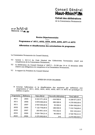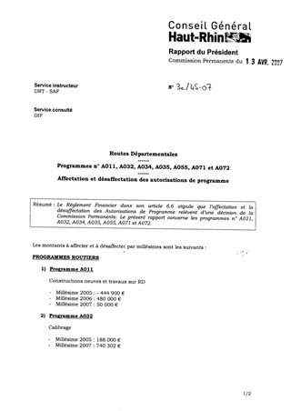 Le Règlement Financier dans son article 6.6 stipule que l’affectation et la désaffectation des Autorisations de Programme relèvent d’une décision de la Commission Permanente. Le présent rapport concerne les programmes n° A011, A032, A034, A035, A055, A071 et A072.