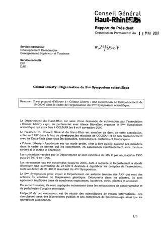 Colmar Liberty : organisation du 5ème Symposium scientifique