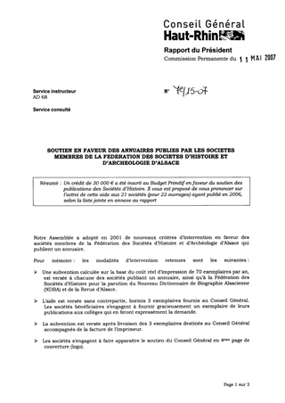 Soutien en faveur des annuaires publiés par les sociétés membres de la fédération des sociétés d'histoire et d'archéologie d'Alsace