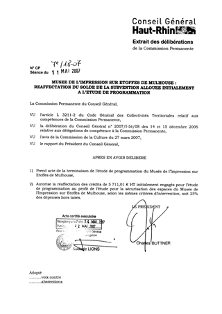 Musée de l'impression sur étoffes de Mulhouse : réaffectation du solde de la subvention allouée initialement à l'étude de programmation
