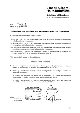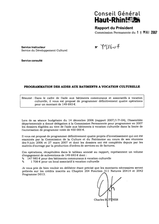 Dans le cadre de l’aide aux bâtiments communaux et associatifs à vocation culturelle, il vous est proposé de programmer définitivement quatre opérations pour un montant de 149 693 €.