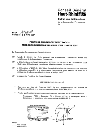 Politique de développement local : 4ème programmation des aides pour l'année 2007