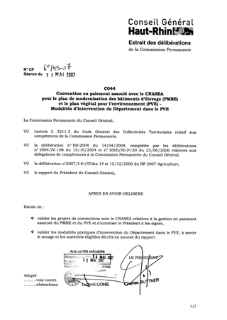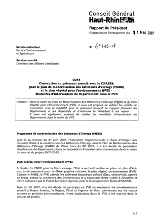C044 : Convention en paiement associé avec le CNASEA pour le plan de modernisation des bâtiments d'élevage (PMBE) et le plan végétal pour l'environnement (PVE) - Modalités d'intervention du Département dans le PVE