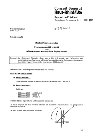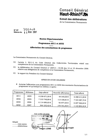 Le Règlement Financier dans son article 6.6 stipule que l’affectation des Autorisations de Programme relèvent d’une décision de la Commission Permanente. Le présent rapport concerne les programmes A011 et A032