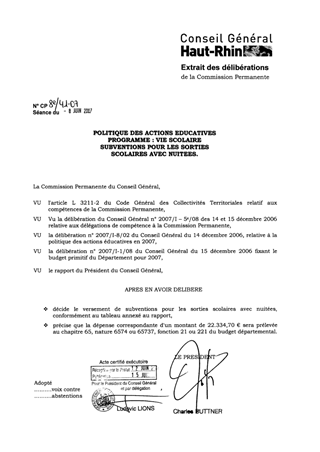 Programme des actions éducatives. Programme : vie scolaire. Subventions pour les sorties scolaires avec nuitées