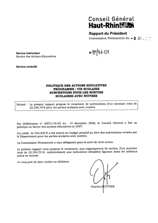 Le présent rapport propose le versement de subventions d’un montant total de 22.334,70 € pour les sorties scolaires avec nuitées