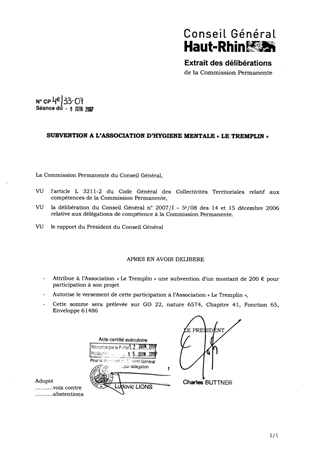 Subvention à l'association d'hygiène mentale "le Tremplin"